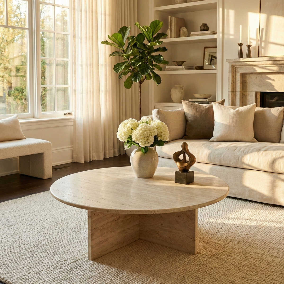 Crafted from natural travertine, each piece is inherently one of a kind.