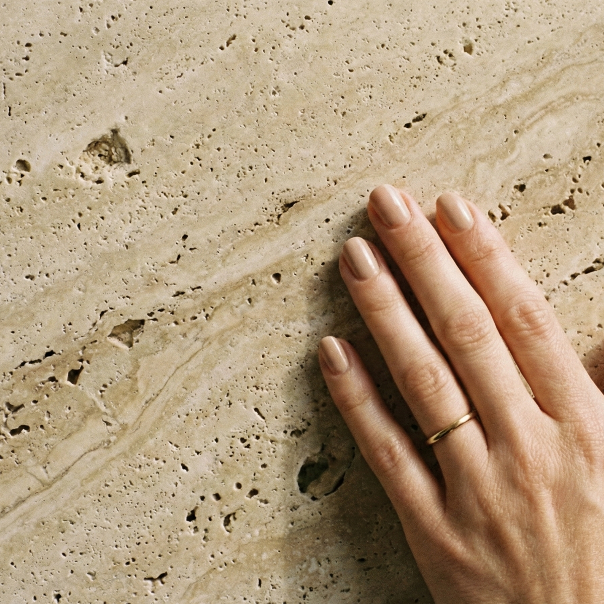 The raw beige travertine holds its original texture open pores, quiet imperfections, and the soft irregularity shaped by time. It reflects an appreciation for restraint, where the beauty lies not in refinement, but in honesty. Each surface tells its own story, formed by nature and preserved by design.